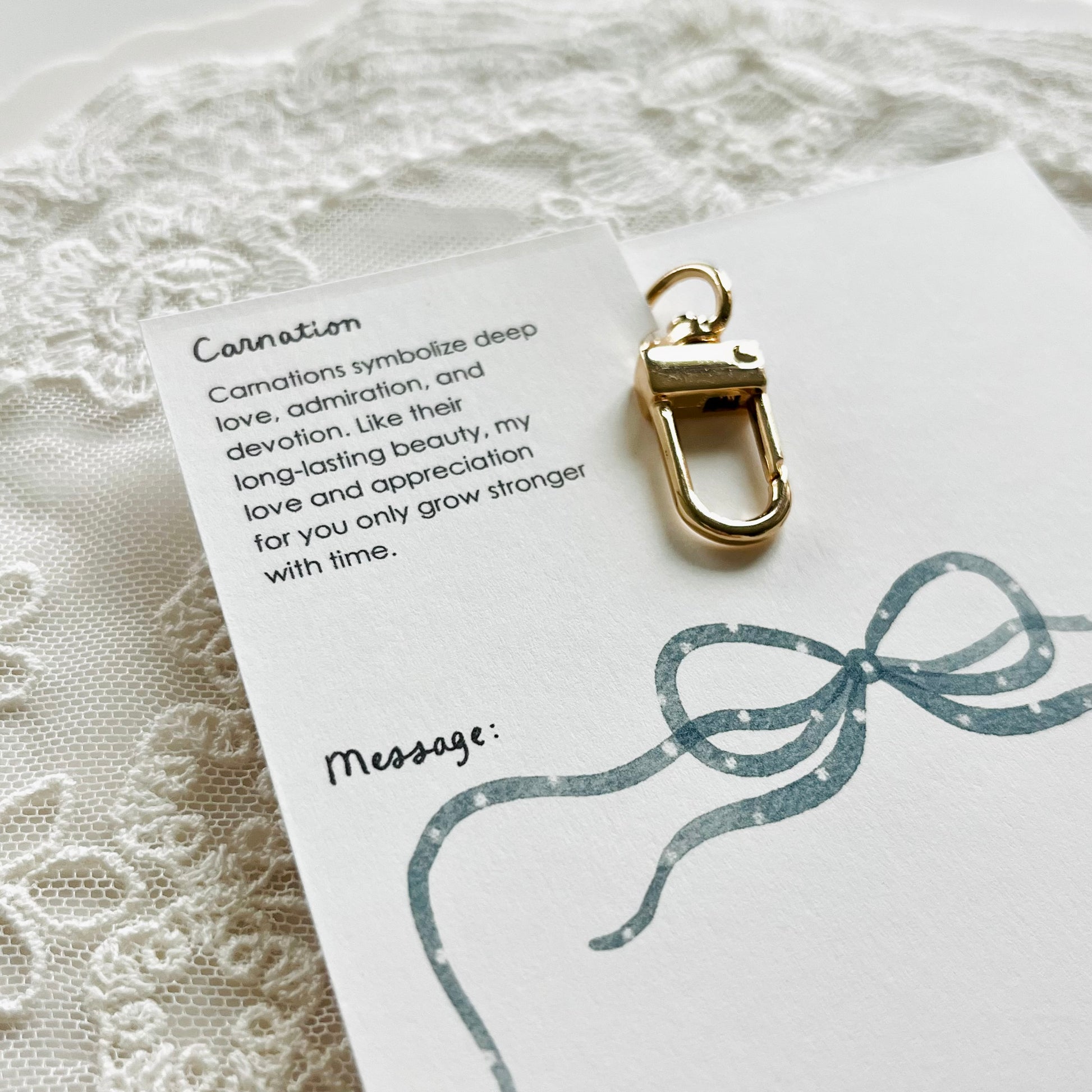 Express heartfelt affection beautifully with our Carnation Keychain and Message Card set. Inspired by the tender charm of carnations, this set gently conveys deep feelings of love, admiration, and lasting appreciation. Carry the lovely carnation keychain as a daily reminder of the special bond you cherish, or gift it to someone dear to warmly share your heart.