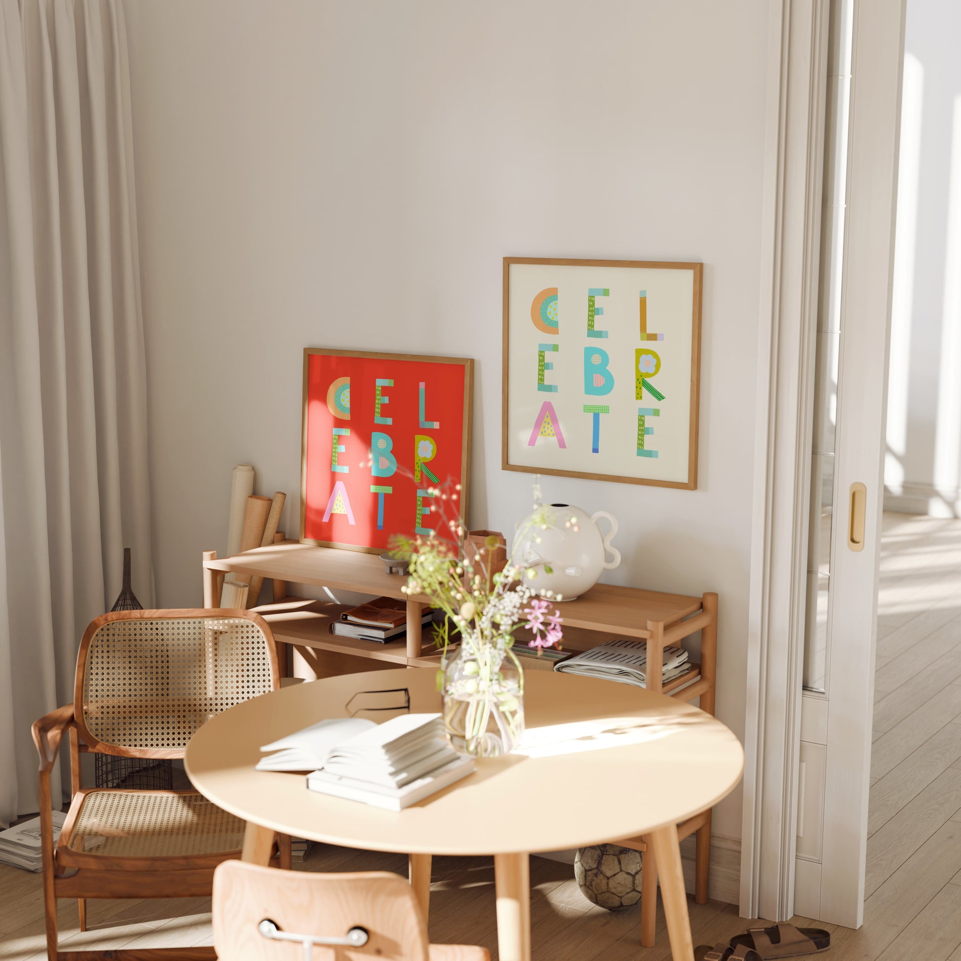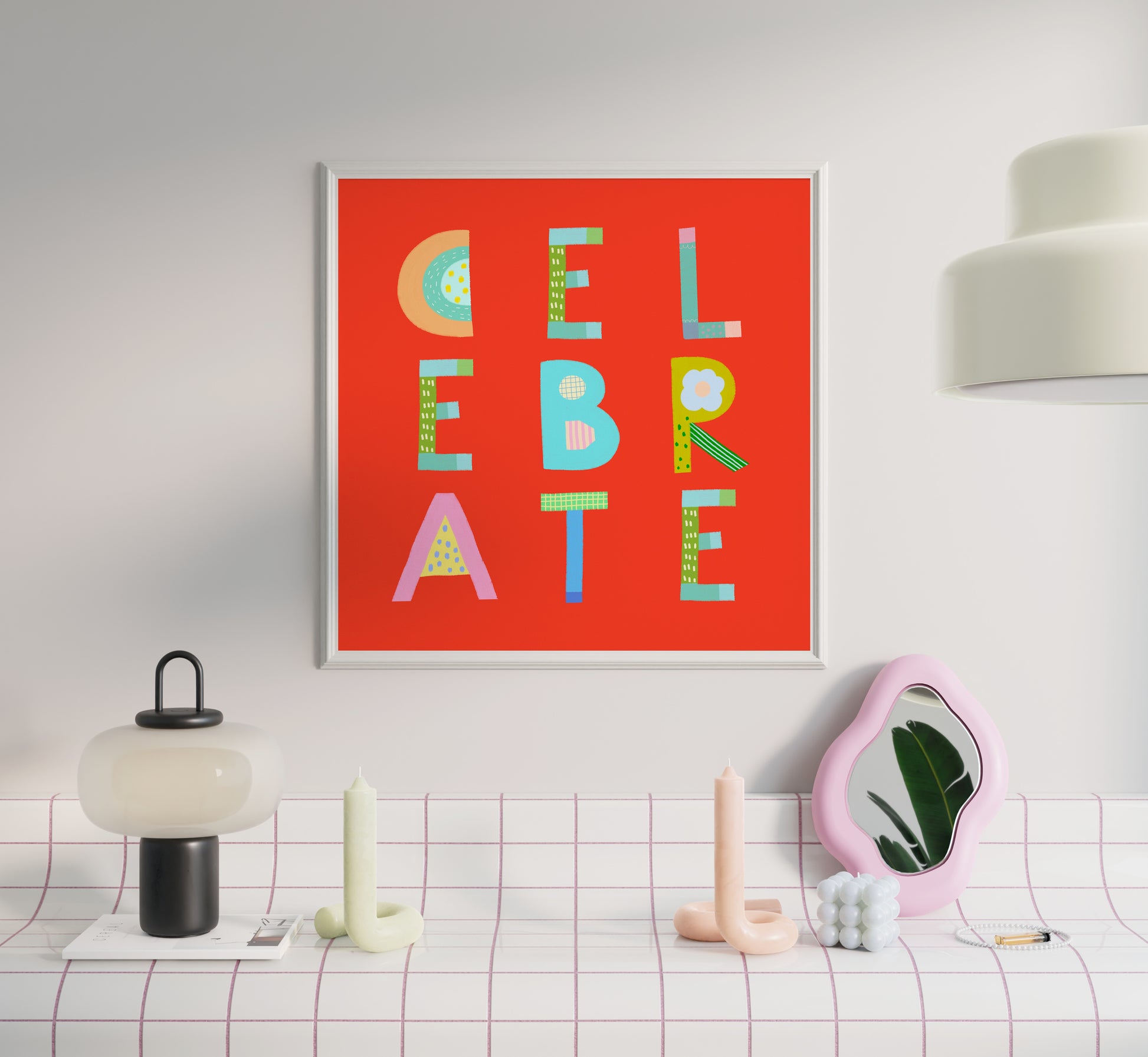 The Celebrate Poster works perfectly in bright, modern, or eclectic decor styles, bringing a pop of excitement wherever it’s placed.