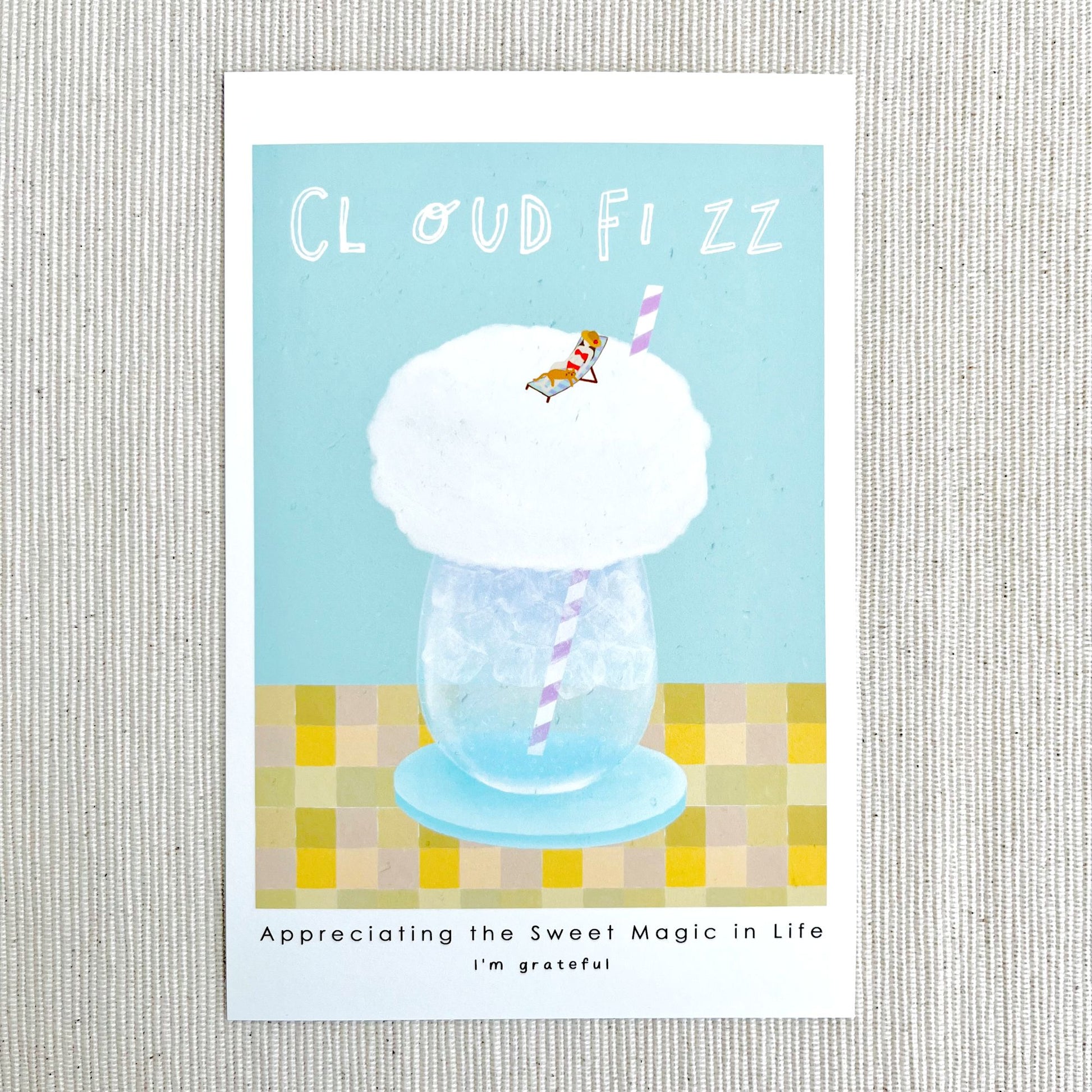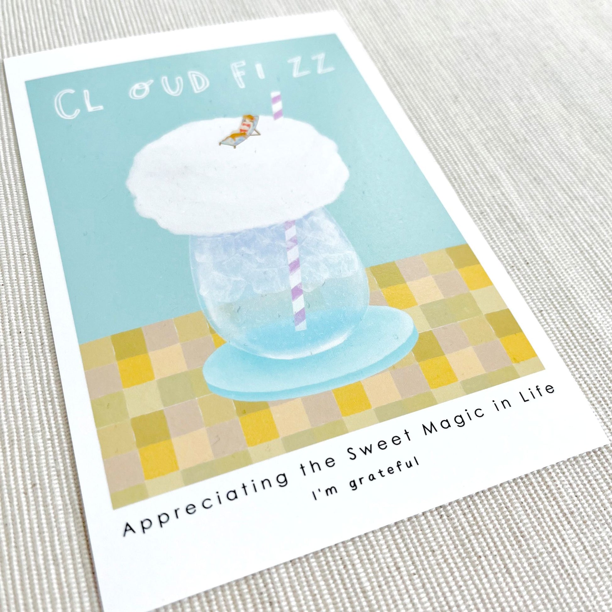 Add a soft pop of pastel charm to your day with the Cloud Fizz postcard, part of our Thankful Table – Mocktail Edition. With its fluffy fizz top and a tiny figure relaxing above the clouds, this dreamy mocktail reminds us to slow down and appreciate the sweet magic in life.