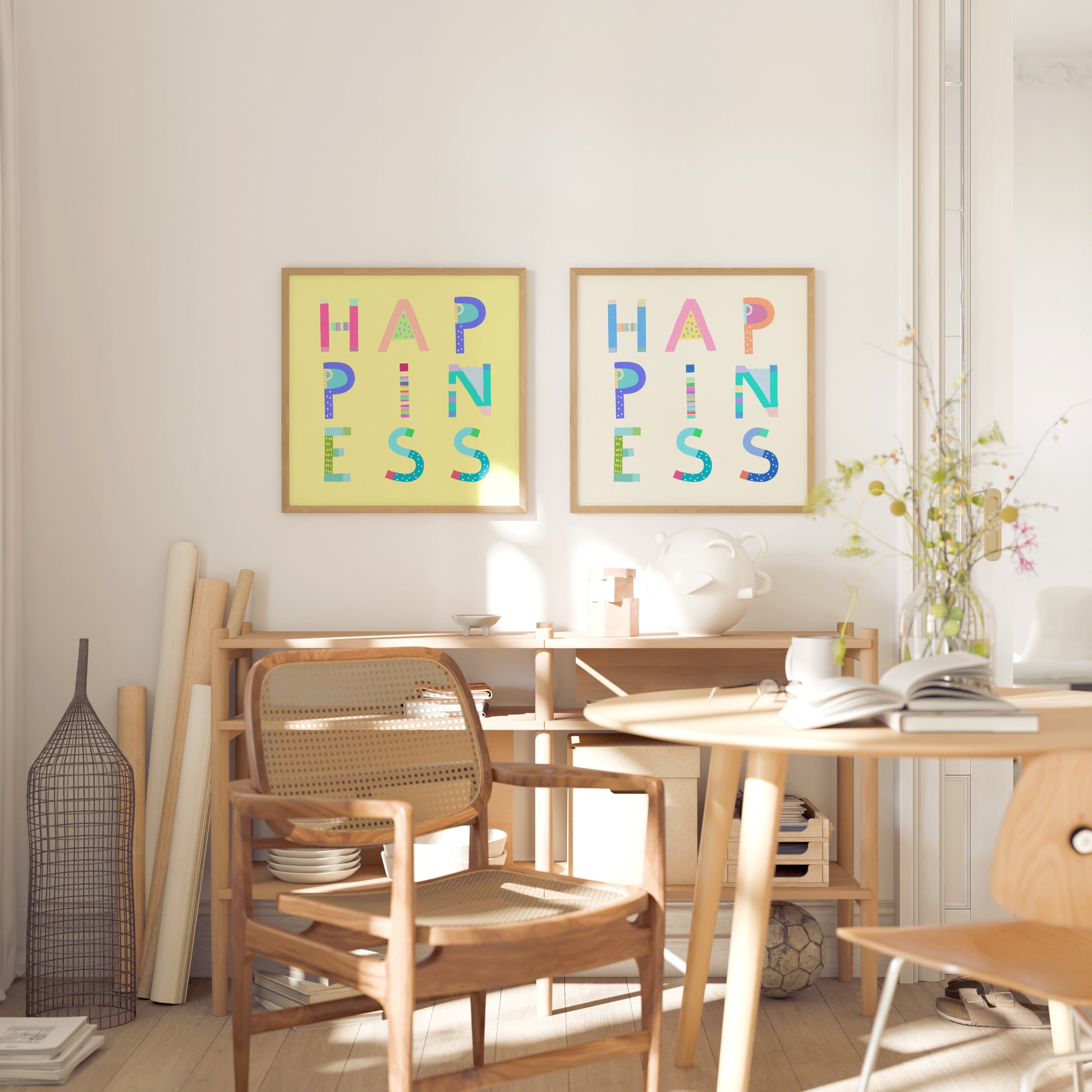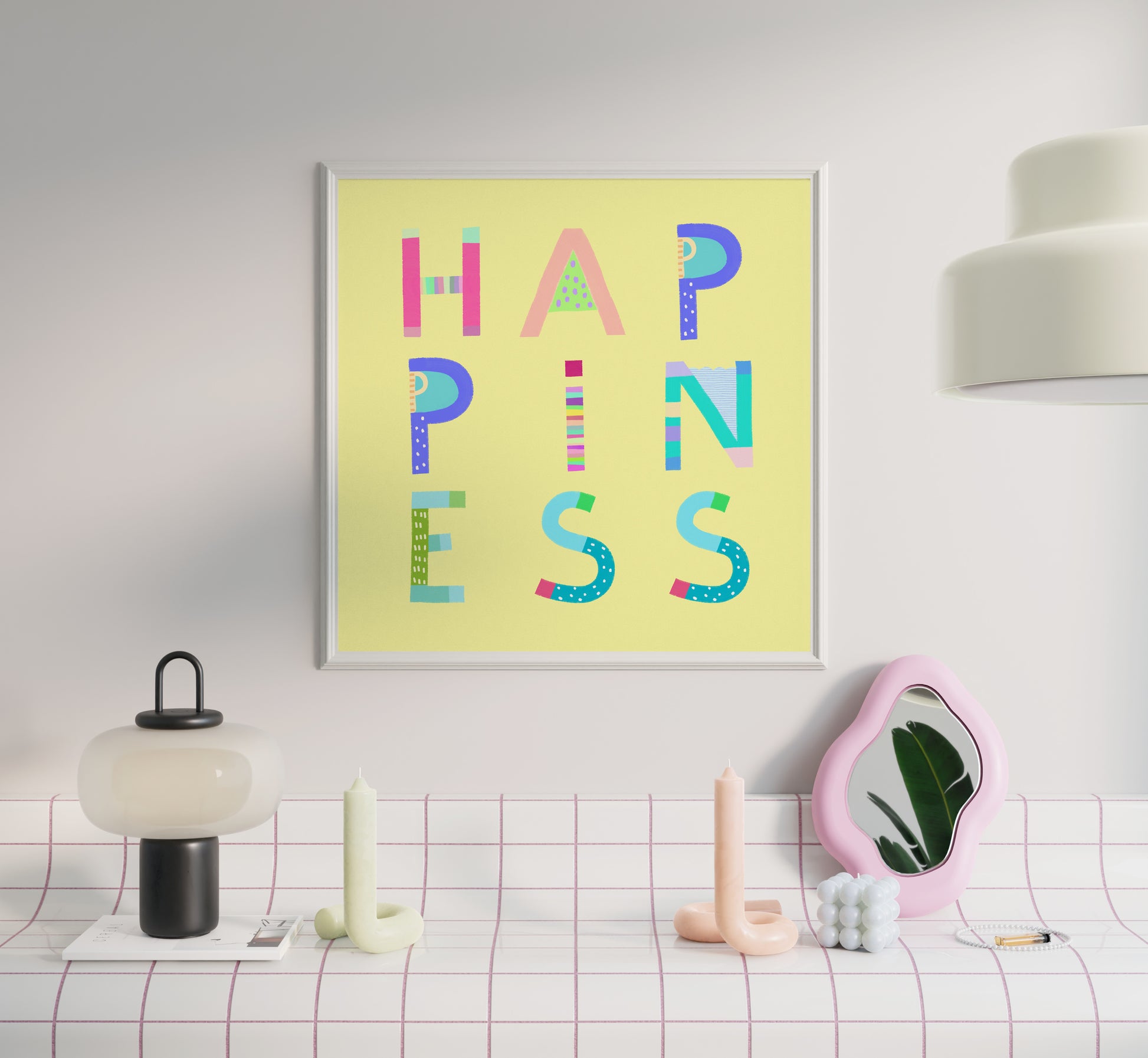 The Happiness Poster fits well into any room, adding a cheerful, positive touch to your space.