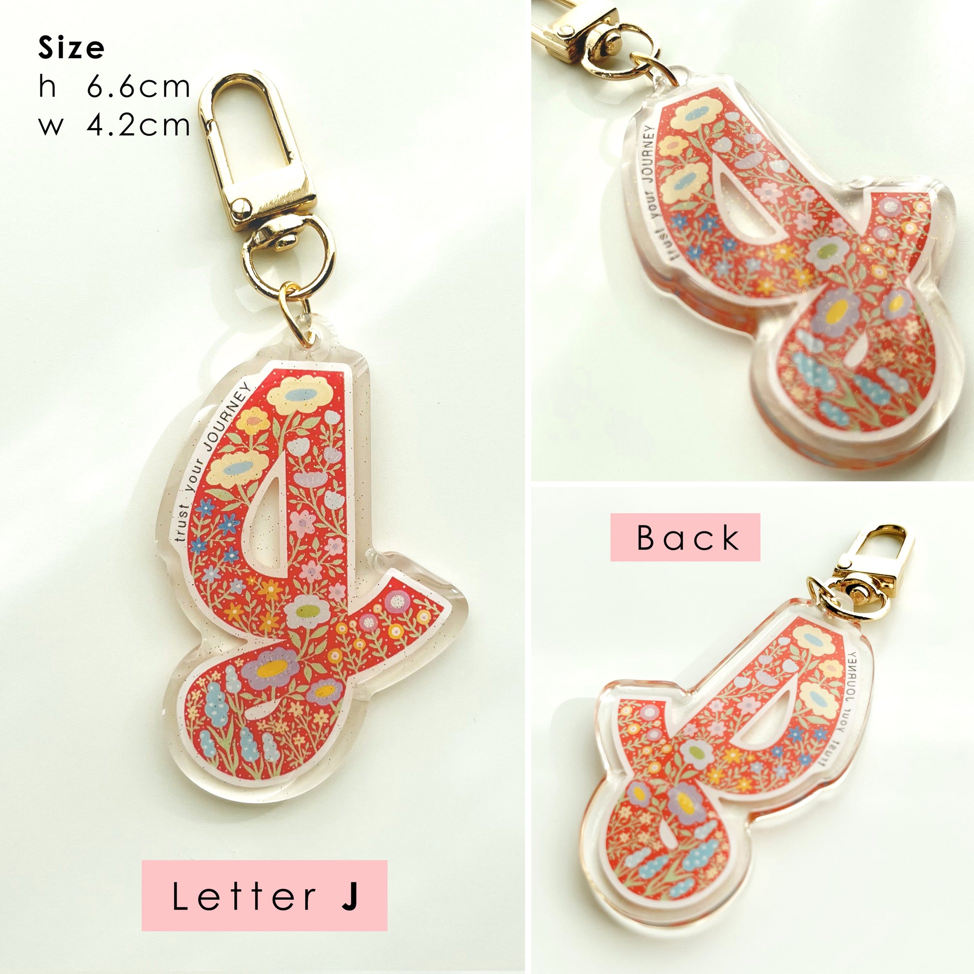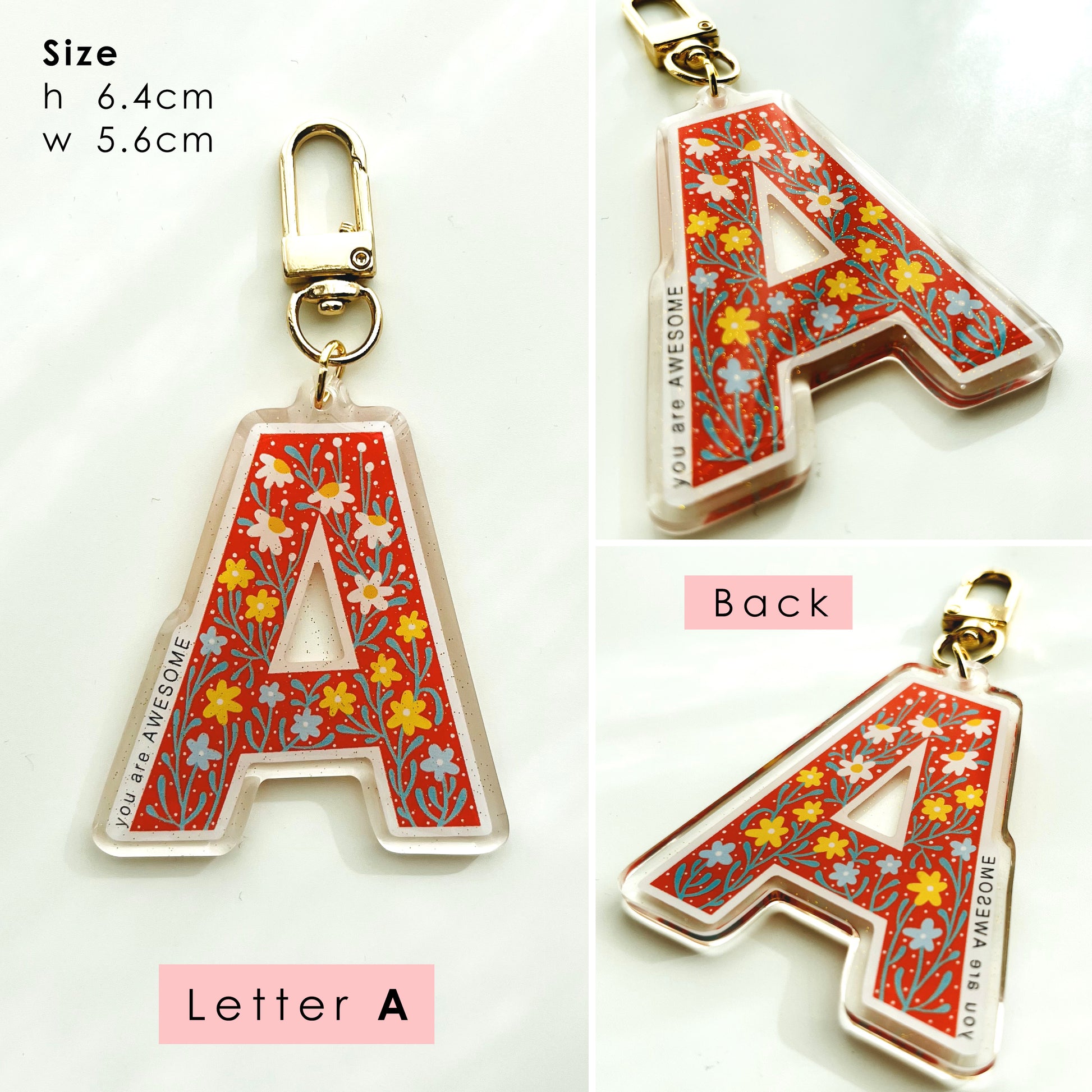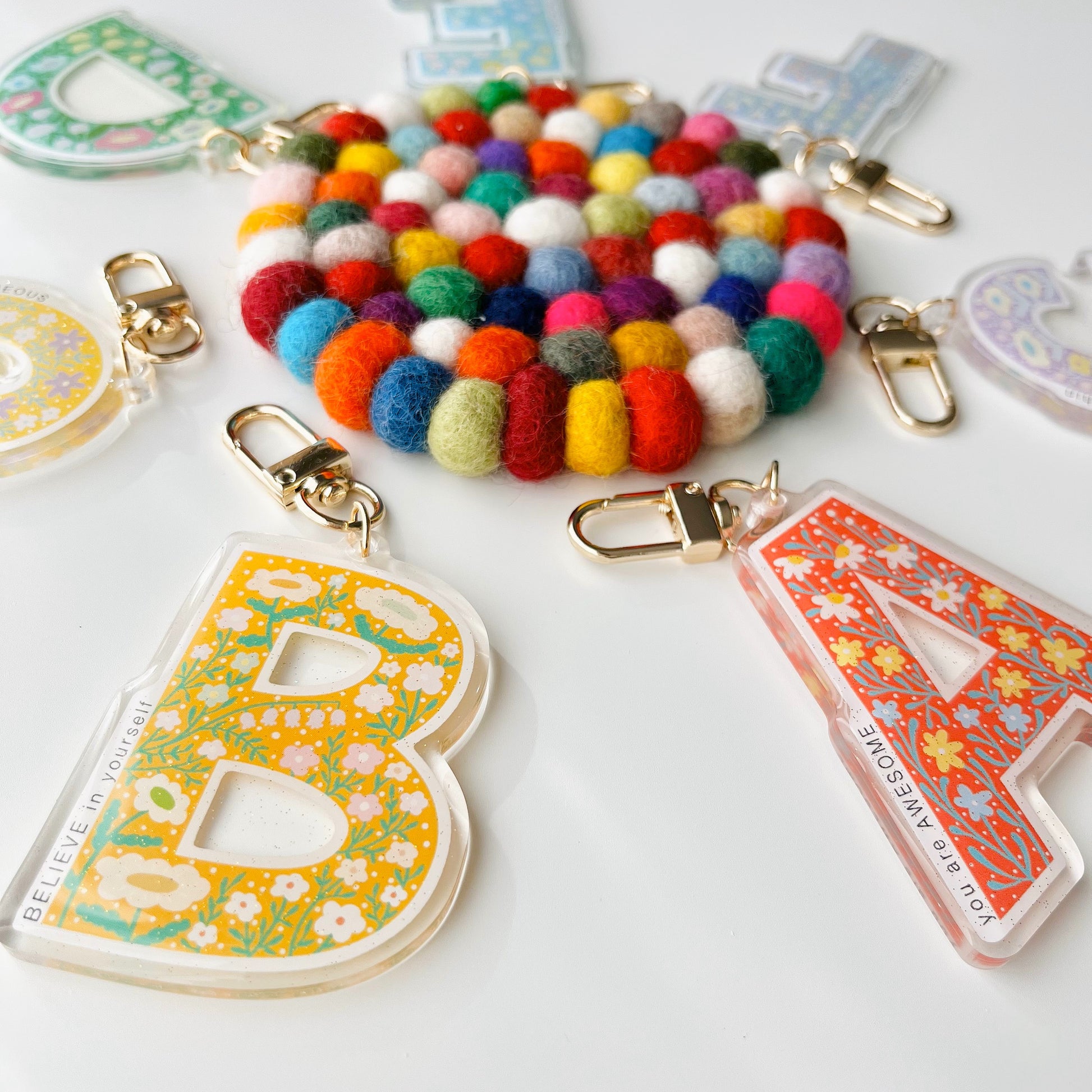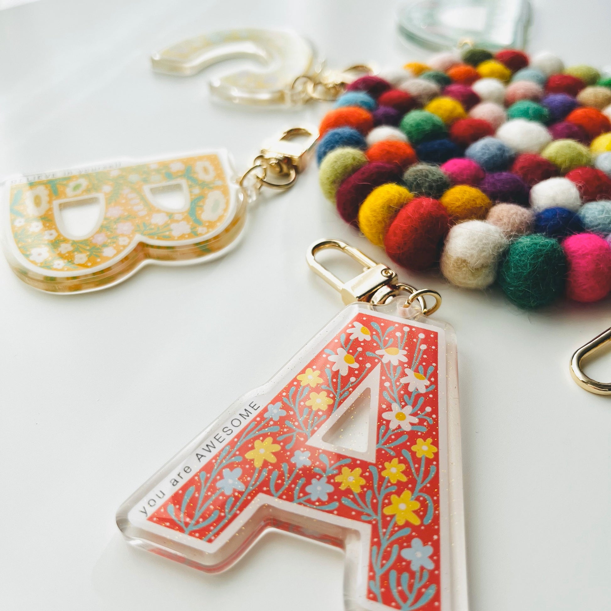Letter Affirmation Keychains – Floral Pattern Epoxy Acrylic Charm