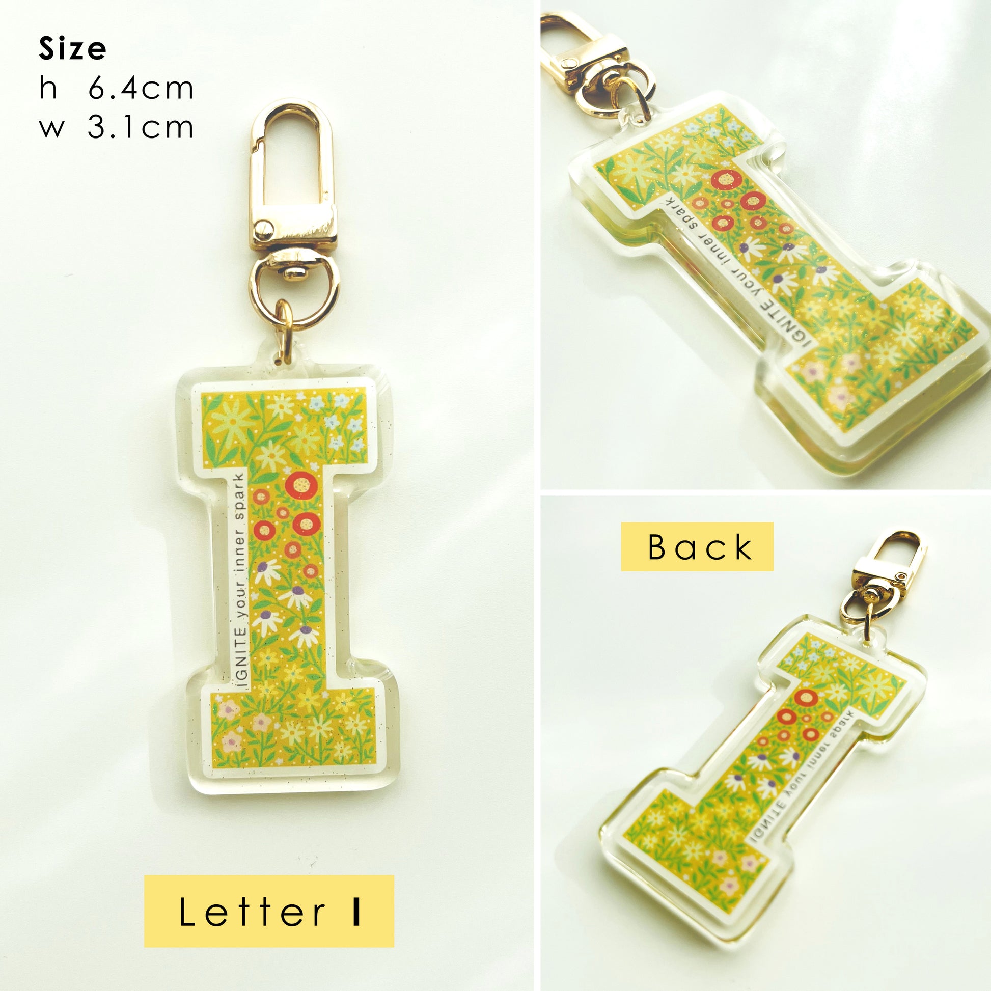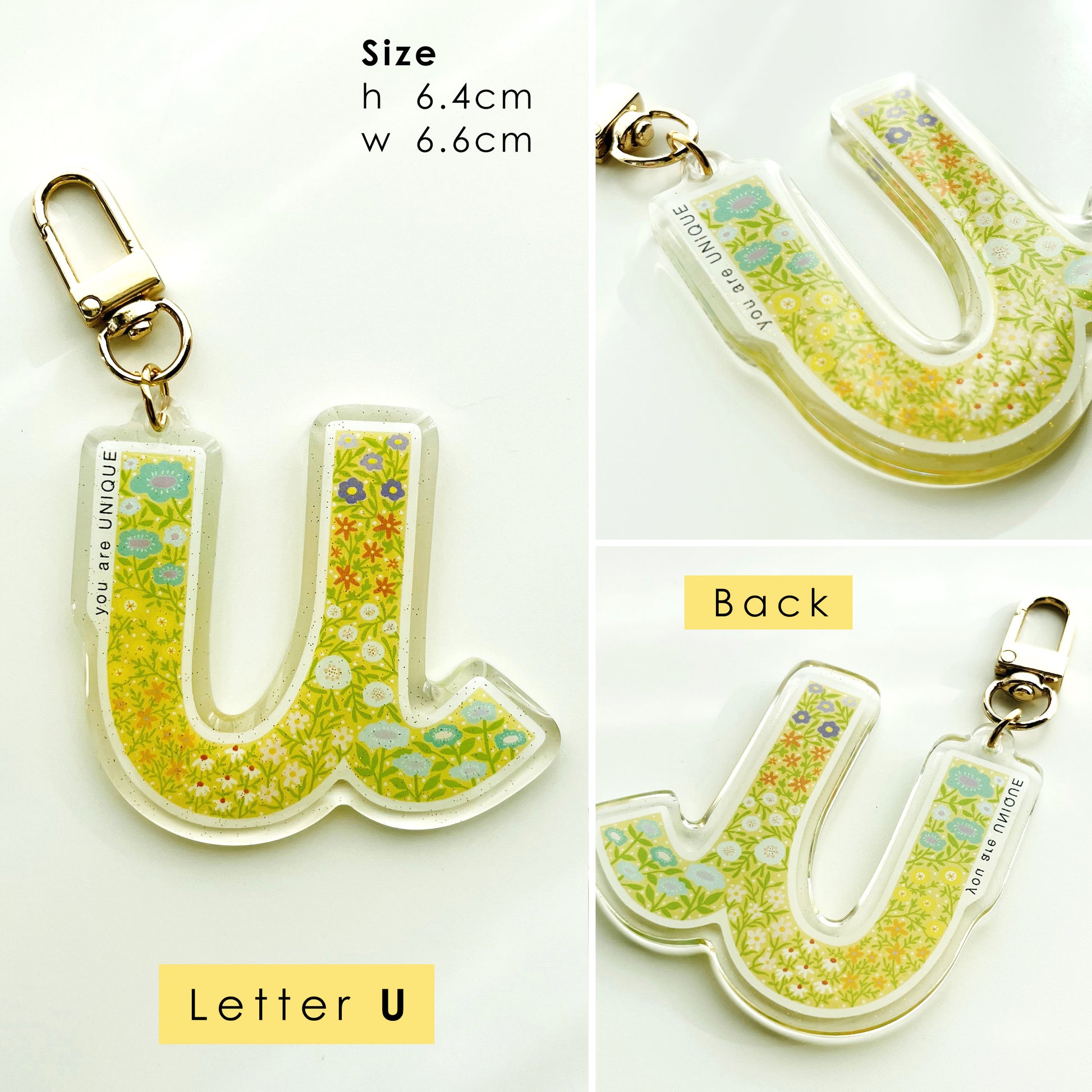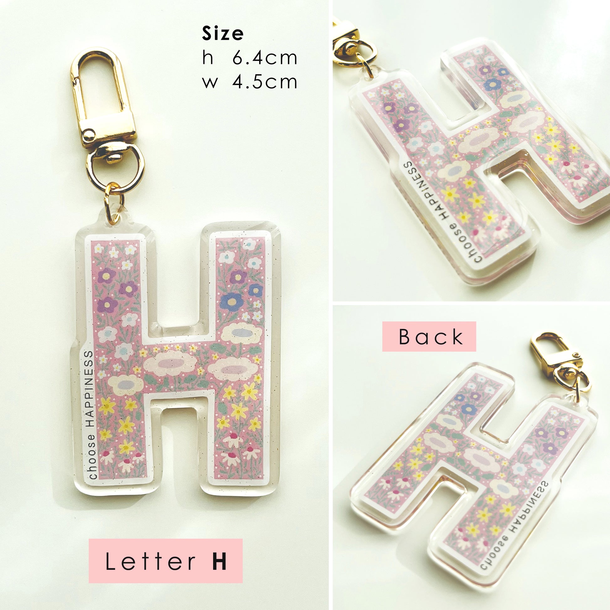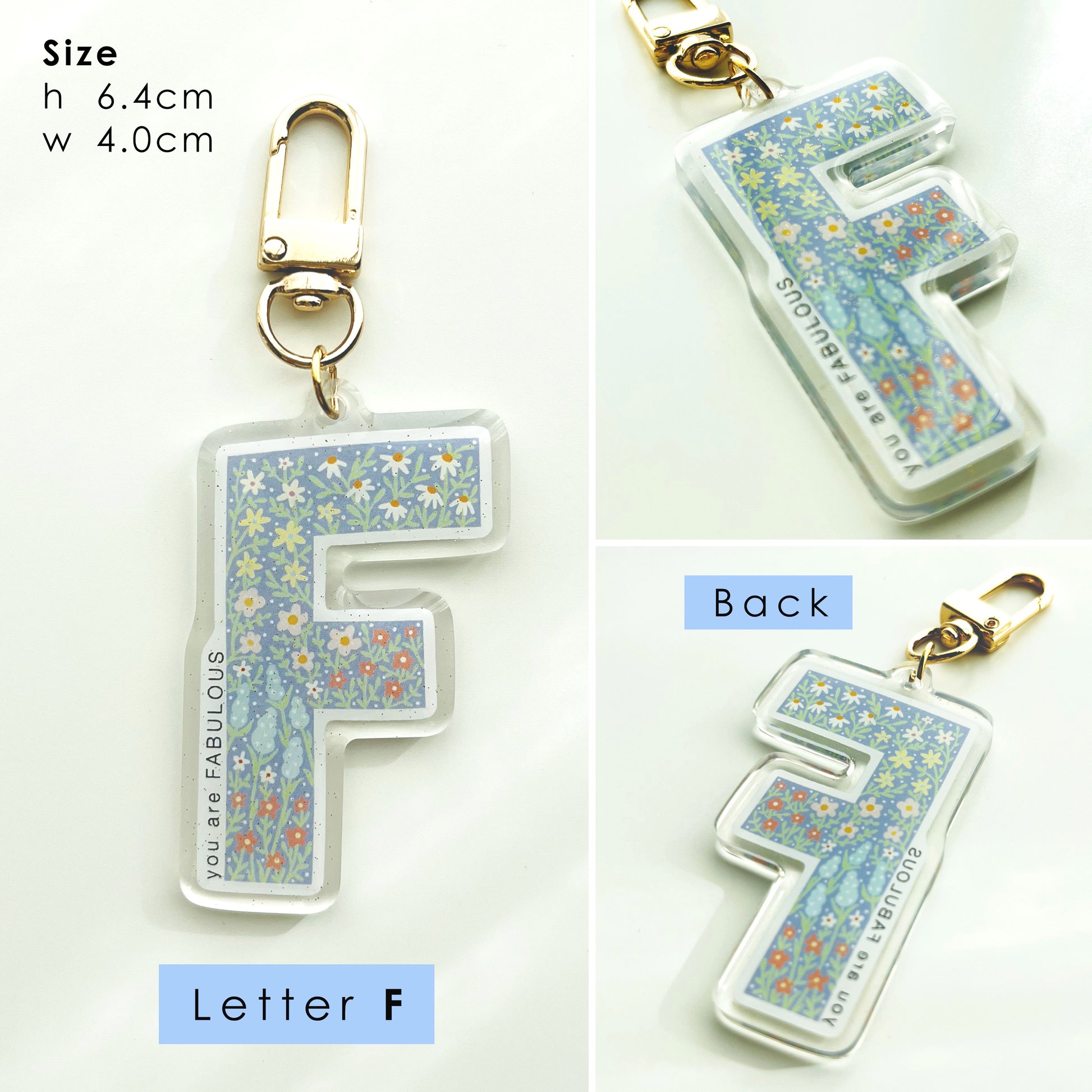 Letter Affirmation Keychains – Floral Pattern Epoxy Acrylic Charm