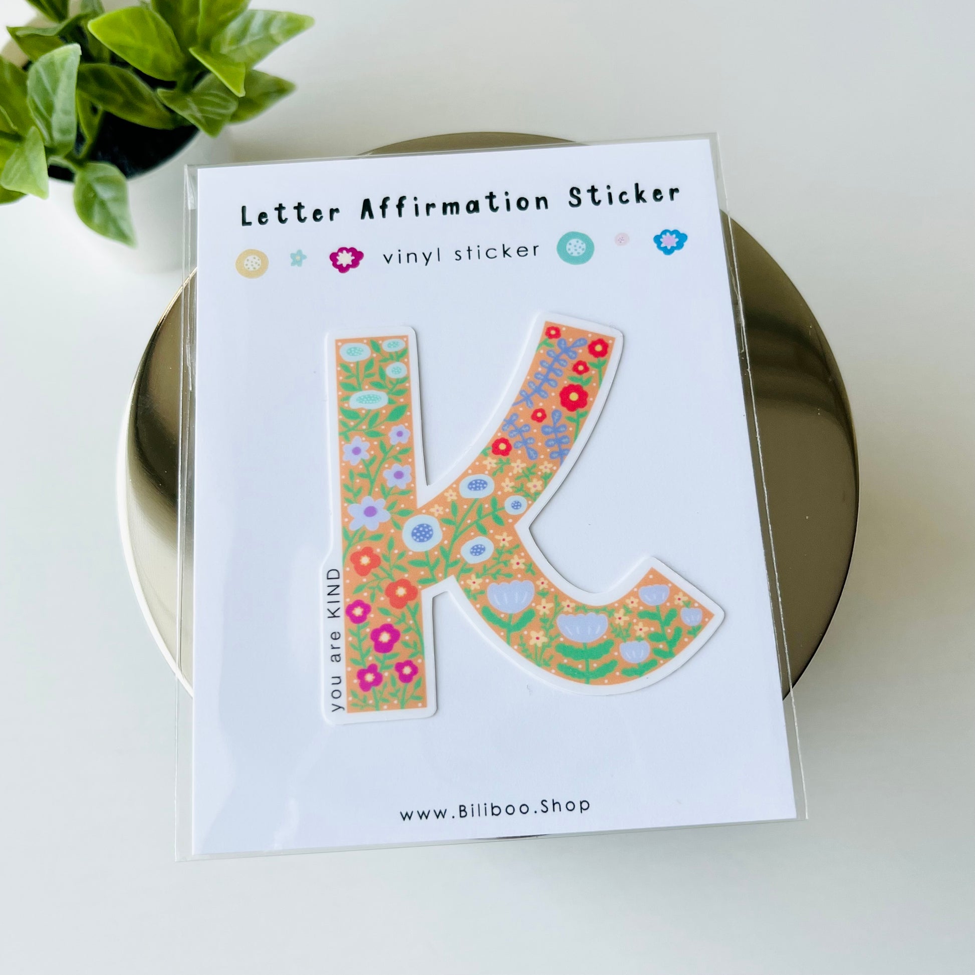 Carry a daily dose of inspiration with our Letter Affirmation Sticker collection. Each sticker is a celebration of individuality, featuring a unique letter from the alphabet beautifully adorned with a bespoke floral pattern. Accompanied by a motivational affirmation, these stickers serve as a personal cheerleader for your day-to-day journey.