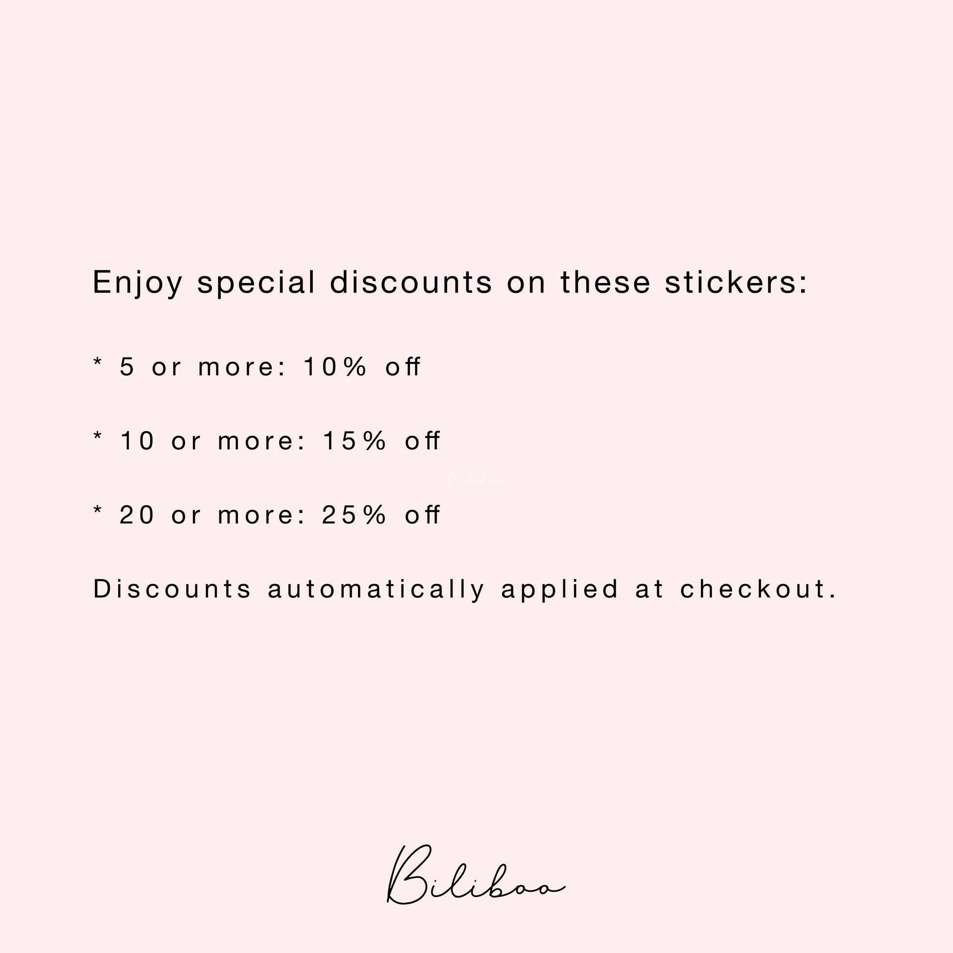 Crafted for durability and beauty, our weatherproof and scratch-resistant stickers are perfect for personalizing laptops, water bottles, journals, and more. Made with premium vinyl material, they withstand the elements, keeping their colors bright and your affirmations visible come rain or shine.
