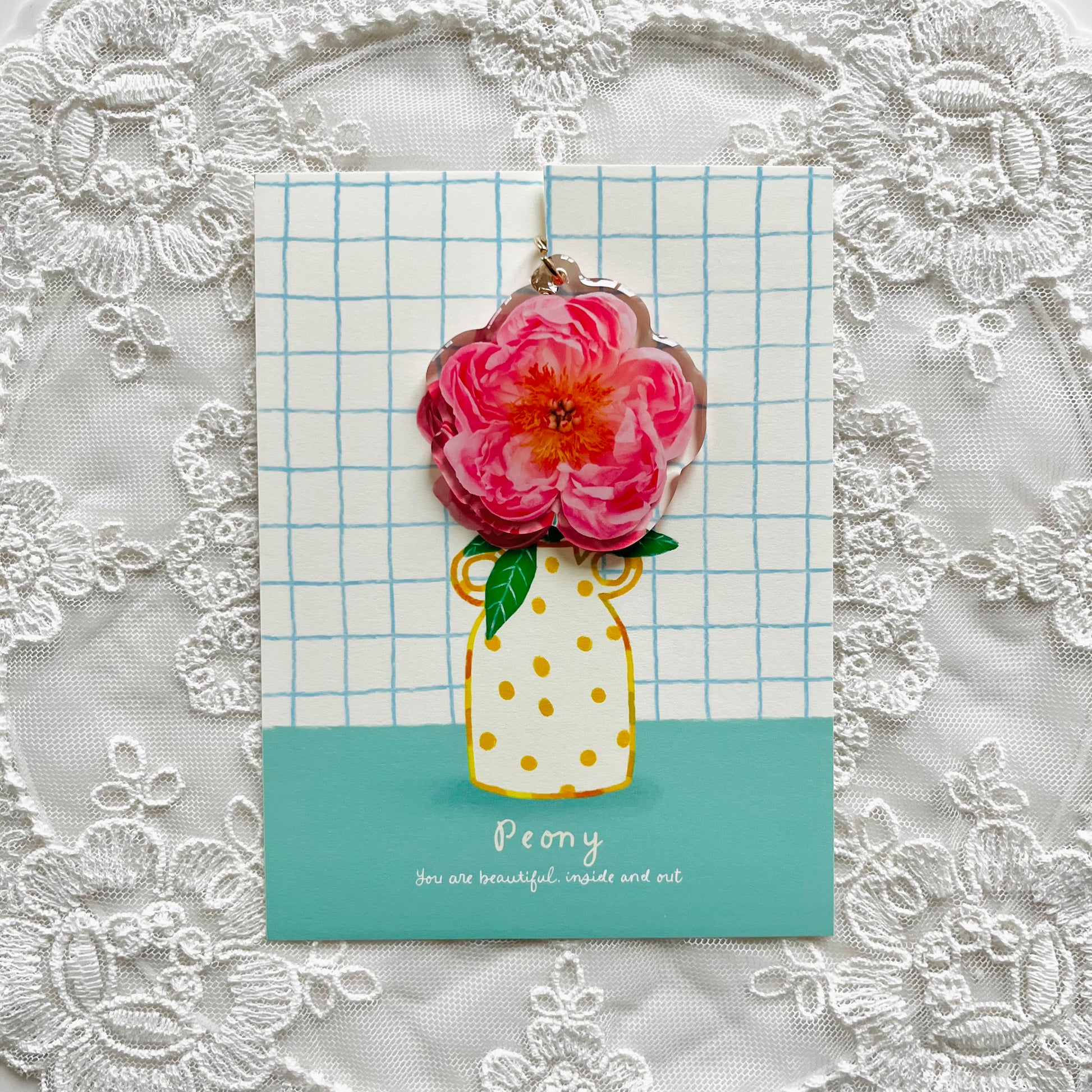 Peony Keychain with Message Card