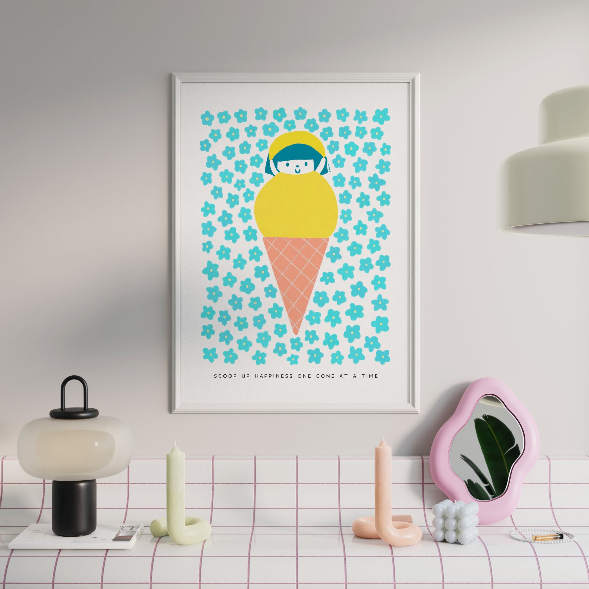 Scoop Up Happiness One Cone at a Time Poster | Inspirational and Playful Art